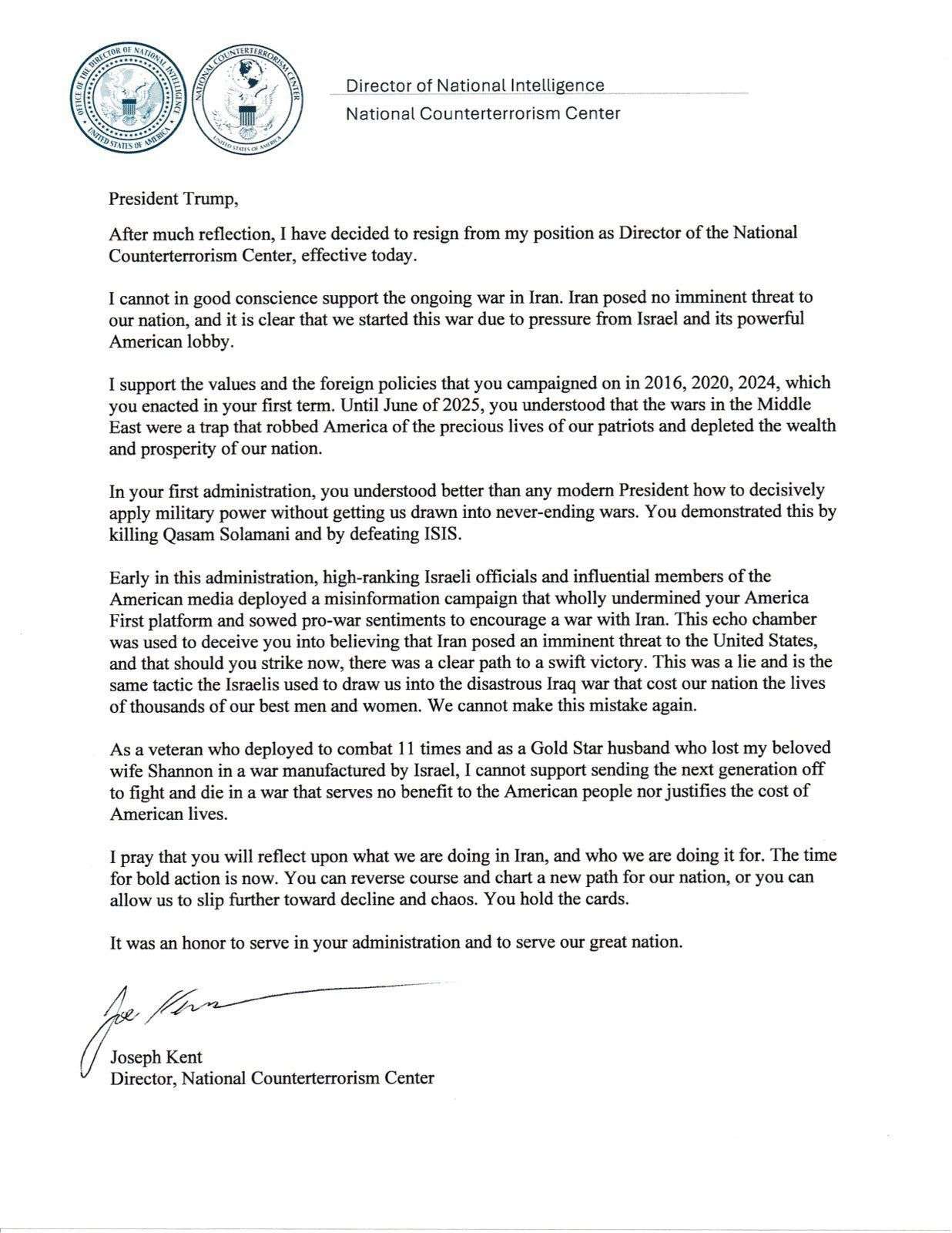 Mar 17, 2026 Director of U.S. Counterterrorism Center Resigns Over Iran War Jobs & News Desk Director of U.S. Counterterrorism Center Resigns Over Iran War, Cites Foreign Influence πJoin JK Updates WhatsApp Channel π 5L+ App Installs - Trusted by Lakhs of Users - Install--> Android - IOS πJoin Our Telegram Channel JK News TodayWorld News