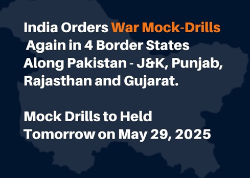 India Orders War Mock-Drills Again in 4 Border States Along Pakistan – J&K, Punjab, Rajasthan and Gujarat
