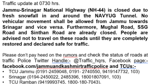 Jammu Srinagar National Highway Morning Updates