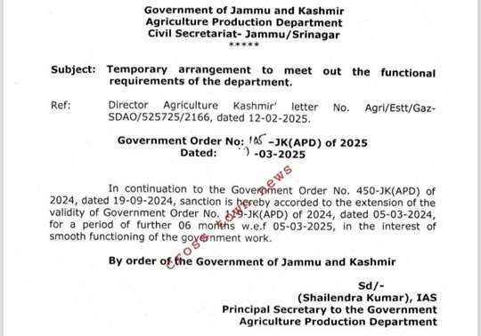 JK News Today: J&K Govt extended temporary arrangements on various posts to meet out functional requirements.