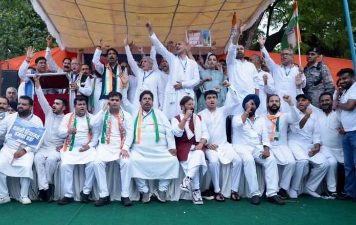 JK News Today: Congress’ Jammu and Kashmir unit on Tuesday staged a protest at Jantar Mantar here, demanding restoration of full statehood to the Union Territory.