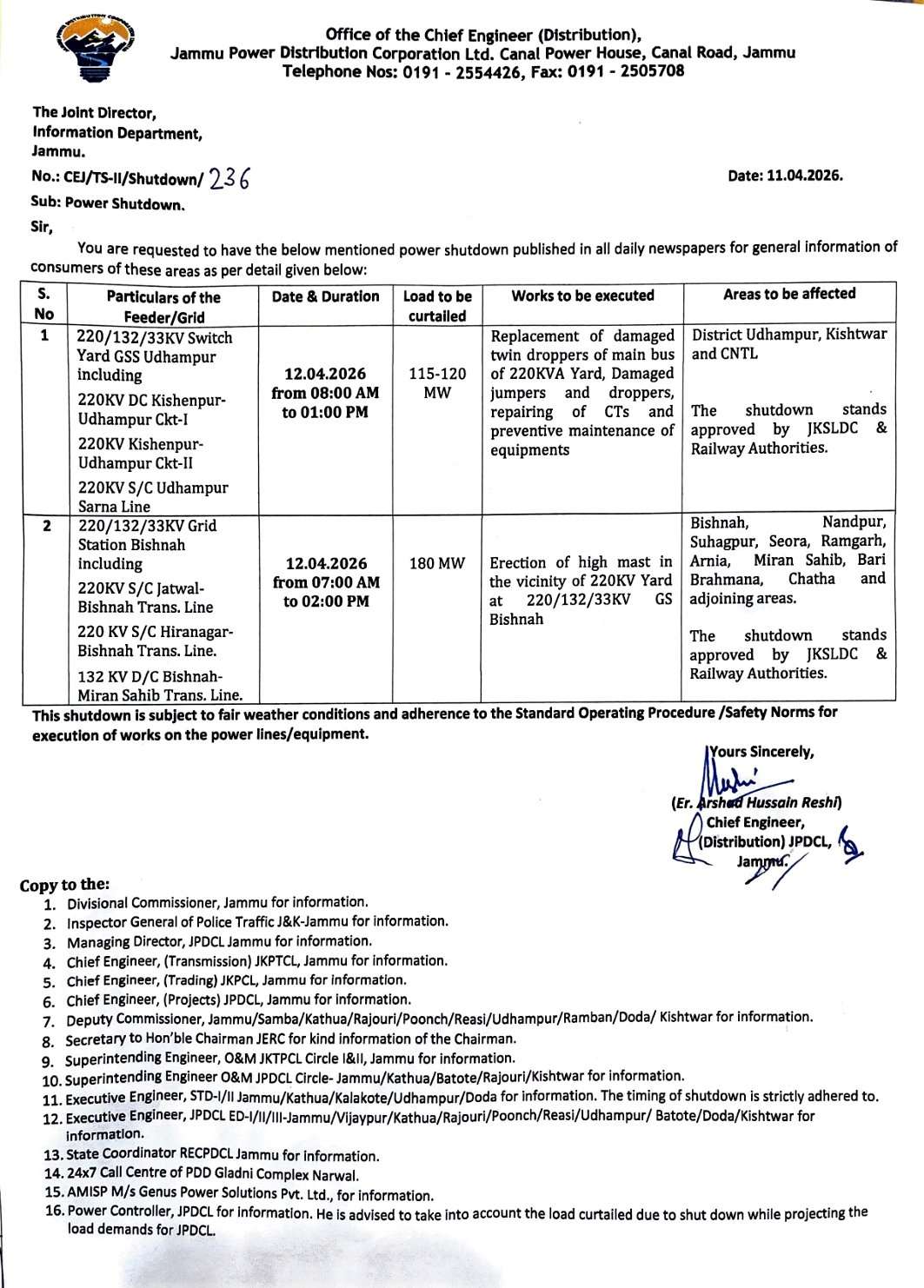 Apr 11, 2026 JK Power Shut Down, JK Power Shutdown Next Exam