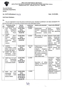 Feb 23, 2026 JK Power Shut Down, JK Power Shutdown Next Exam JK Power Shutdown Schedule For 24th Feb 2026 Dated: 24th Feb 2026 5L+ App Installs - Trusted by Lakhs of Users - Install--> Android - IOS 👉Join Our Telegram Channel JK News TodayGovernment NotificationsJammu NewsNotifications