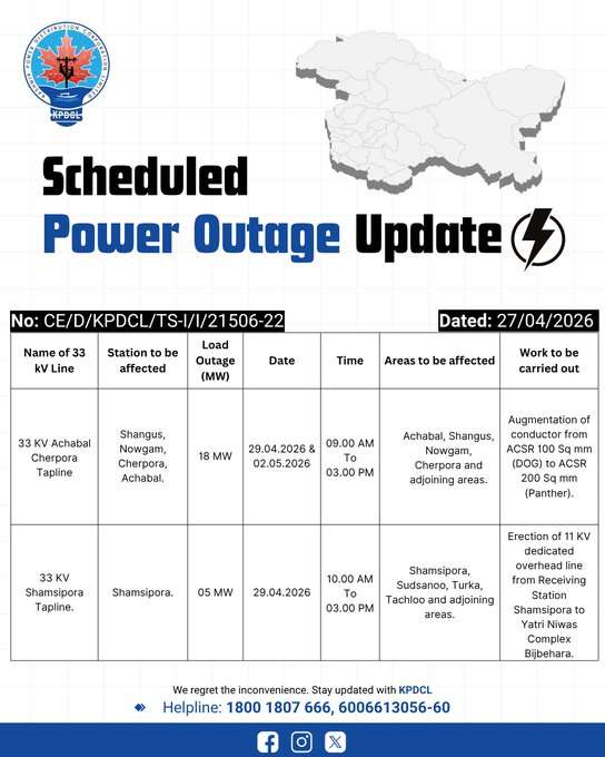 Apr 27, 2026 JK Power Shutdown Schedule For 28th April 2026 Jobs & News Desk