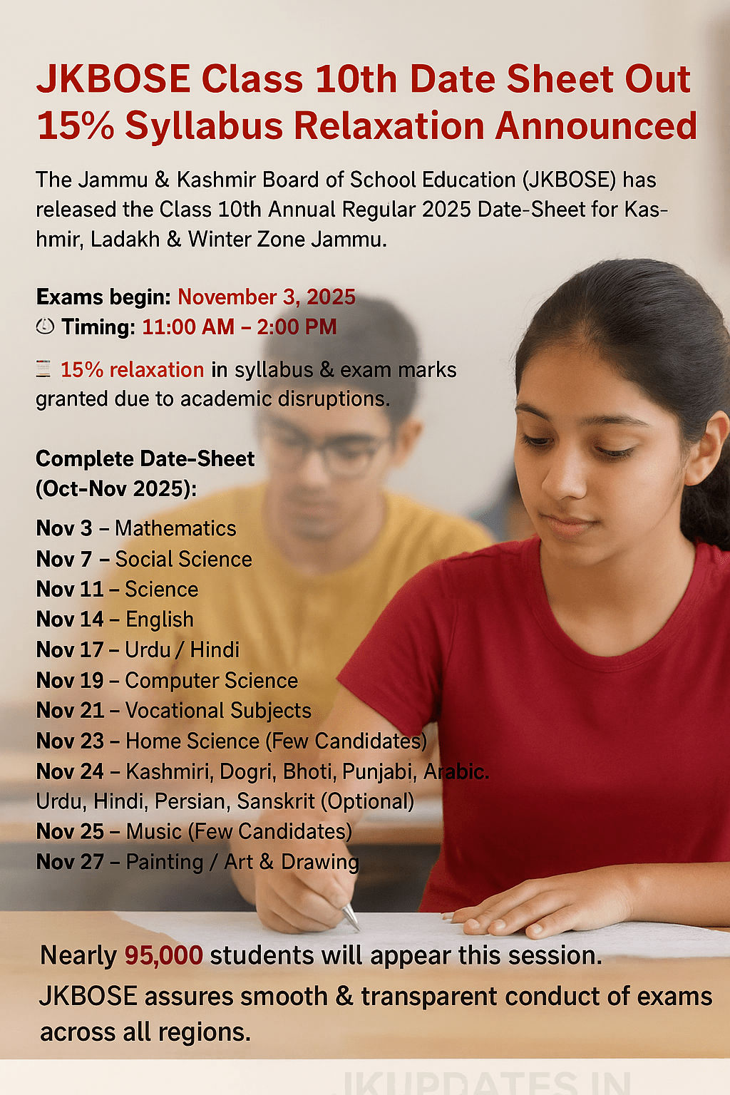 JKBOSE Class 10th Date Sheet Out | 15% Syllabus Relaxation Announced – JKBOSE Class 10th Date Sheet