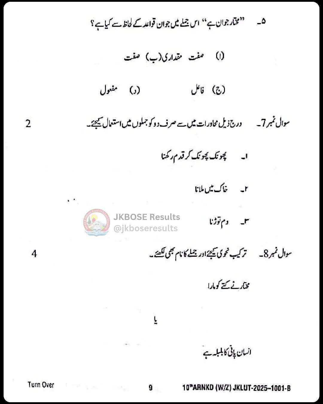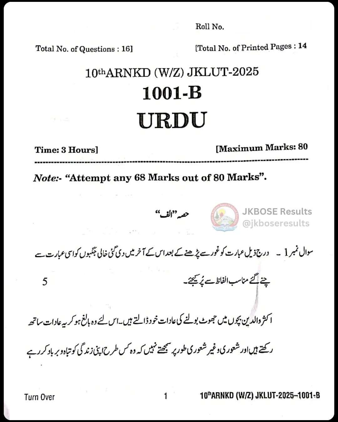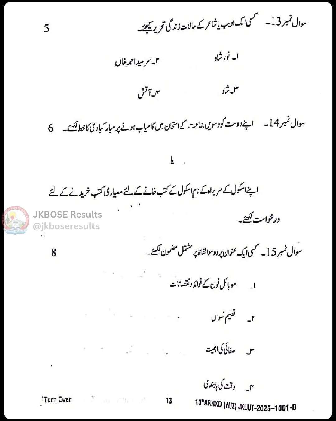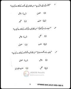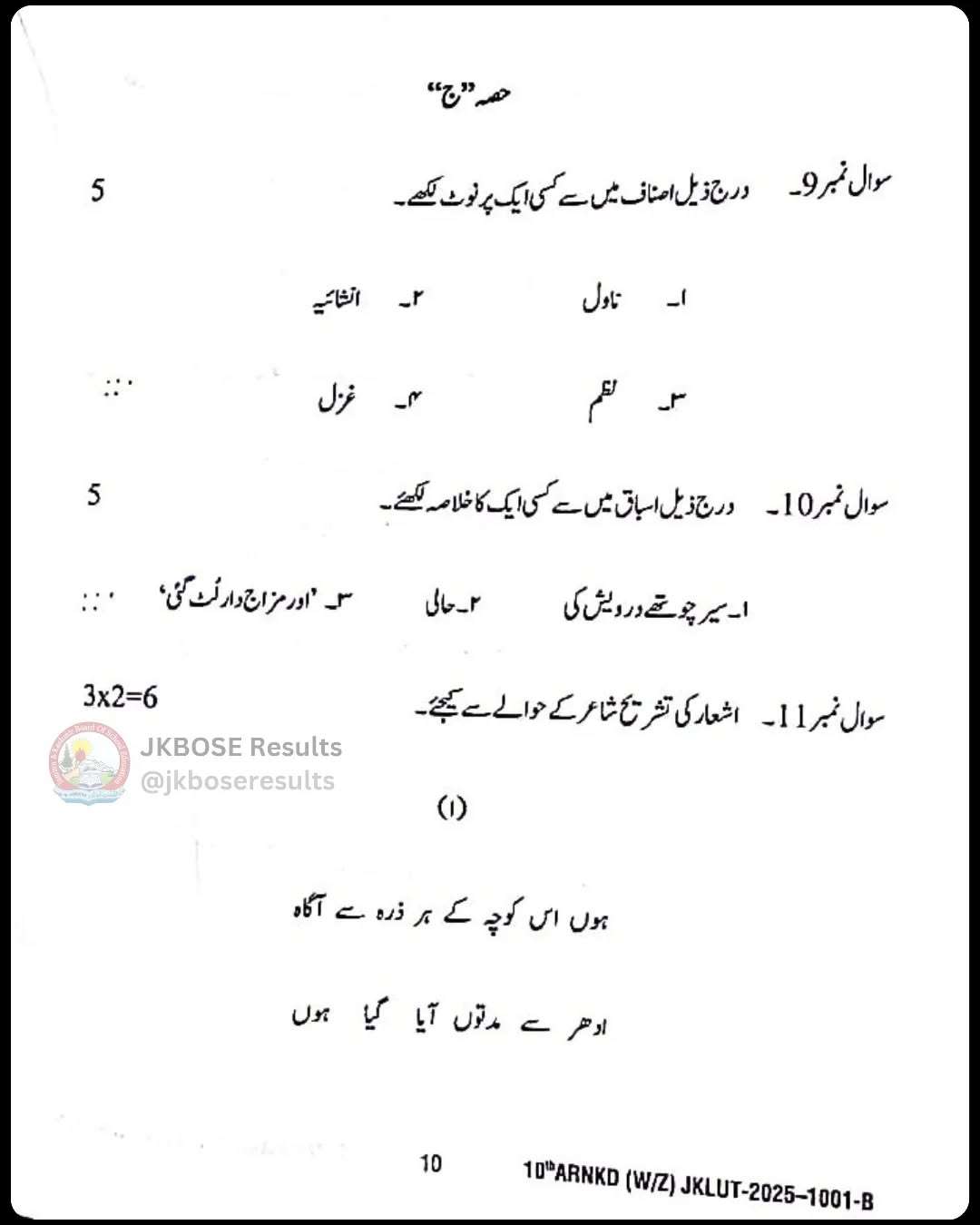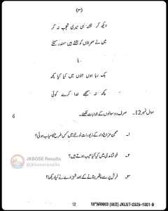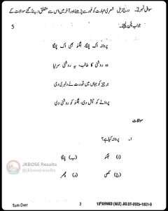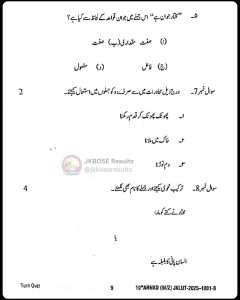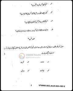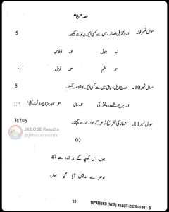 JKBOSE Class 10th Question Paper Download – Subject Urdu