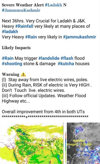 Severe Weather Alert #Ladakh N #JammuKashmir