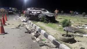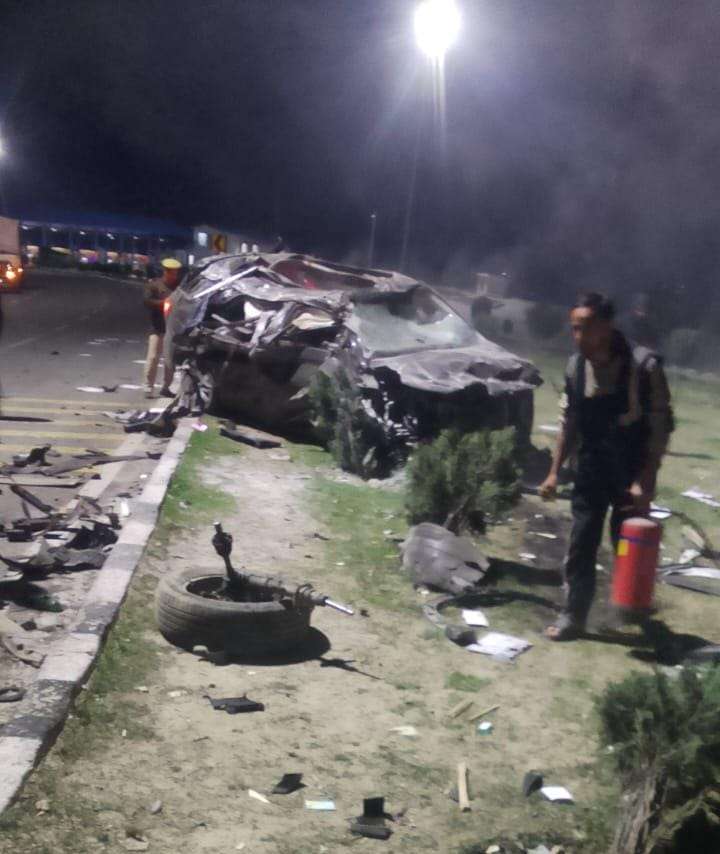 A vehicle coming from Jammu lost control due to overspeeding and crashed into a temporary police structure.