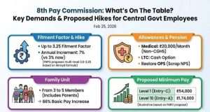 Under Fitment Factor & Salary Hike, the fitment factor may go up to 3.25. The annual increment is proposed to increase to 7% instead of the current 3%. FNPO has suggested a multi-level fitment factor ranging from 3.0 to 3.25 based on the Aykroyd formula.