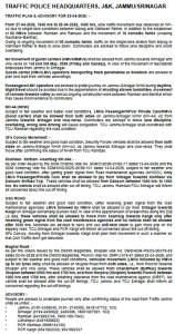 No movement of goods carrier (HMV/MV) shall be allowed from Jammu towards Srinagar and vice-versa on 1st and 3rd May 2026 (Friday and Sunday), in view of the movement of Secretariat employees from Jammu to Srinagar.